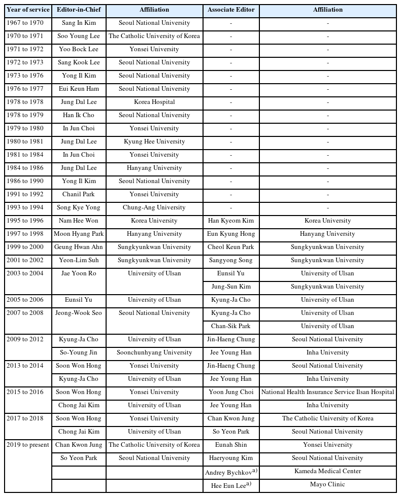 | Year of service | Editor-in-Chief | Affiliation | Associate Editor | Affiliation |